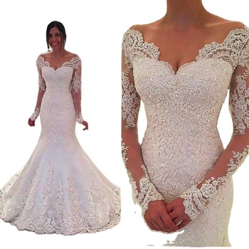 Nàng Tiên Cá Dài Tay Áo Phụ Nữ Wedding Dresses Appliques Sequins Bridal Gowns Trang Phục Chính Thức Vestido De Noiva Áo De Mariée
